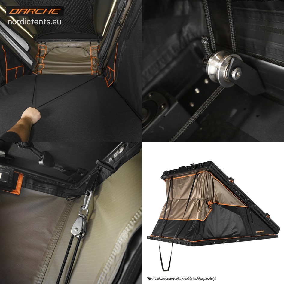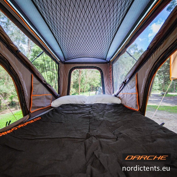 Til je reisgemak naar een hoger niveau met de Darche Lightrize, een daktent ontworpen voor ontdekkingsreizigers die maximaal comfort willen zonder concessies. Het innovatieve dubbelvouwontwerp opent zich tot een indrukwekkend grote binnenruimte, waardoor je ruimte hebt om je uit te strekken, vrij te bewegen en al je benodigdheden op te bergen, zelfs als de tent dicht is.